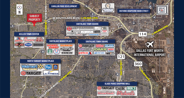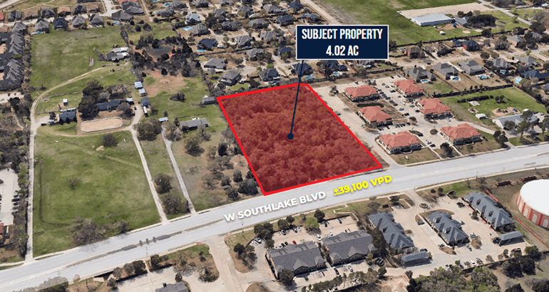 • Excellent frontage on W Southlake Blvd (FM 1709) with left turning lane access