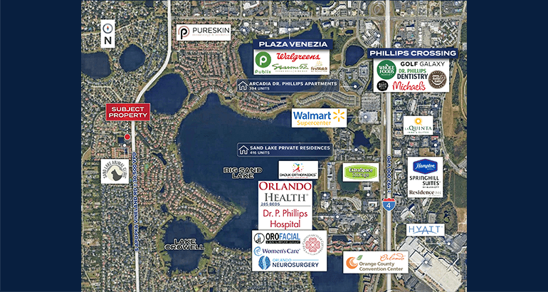 Located near Orlando Health Dr. P. Phillips Hospital, the subject property is well positioned to serve the immediate residential community while also benefiting from strong referral potential from the hospital and neighboring medical operators.