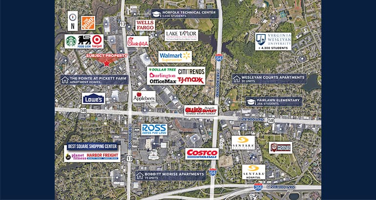 Retail centric – The retail presence surrounding this asset is plentiful, including the 930,000 SF mall, various strip and neighborhood centers, and national retail tenants. Costco, Target, Chick-fil-A, Wells Fargo, and Starbucks are a few examples.