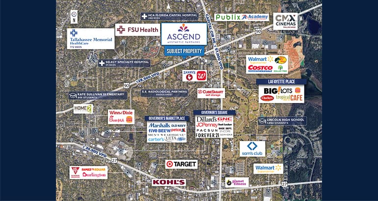 Healthcare corridor – Tallahassee Memorial (772 beds), HCA Florida Capital (288 beds), and Select Specialty LTAC (35 beds) are within 1.25 miles of this surgery center. With a total of 1,095 beds, this dense concentration of hospitals creates a unique medical corridor, prime for a medical clinic and surgery center.