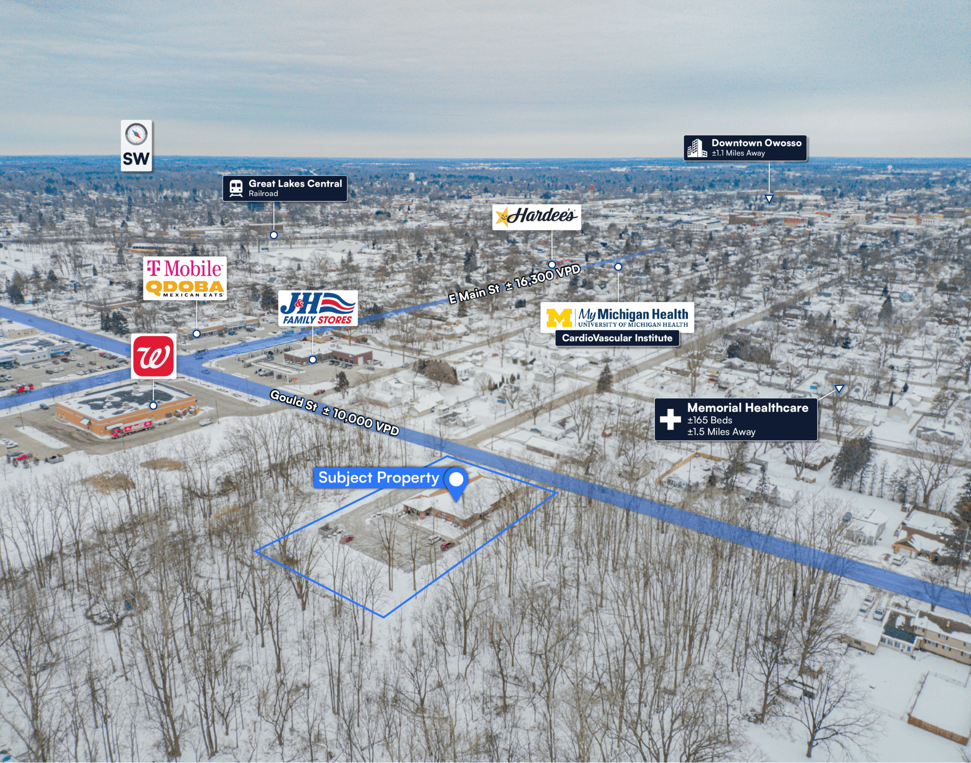 Convenient Regional Access: Owosso is strategically located approximately 29 miles west of Flint and 32 miles northeast of Lansing, making it accessible to a broader regional population for healthcare services while maintaining a strong primary patient base.