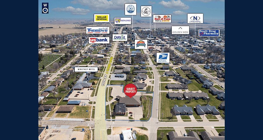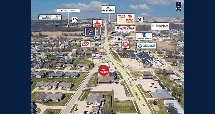 Prime Location– The 12,118 sq. ft. medical office is situated in a high-traffic area in DeWitt, Iowa, near key amenities, major roadways, residential areas, and synergistic medical