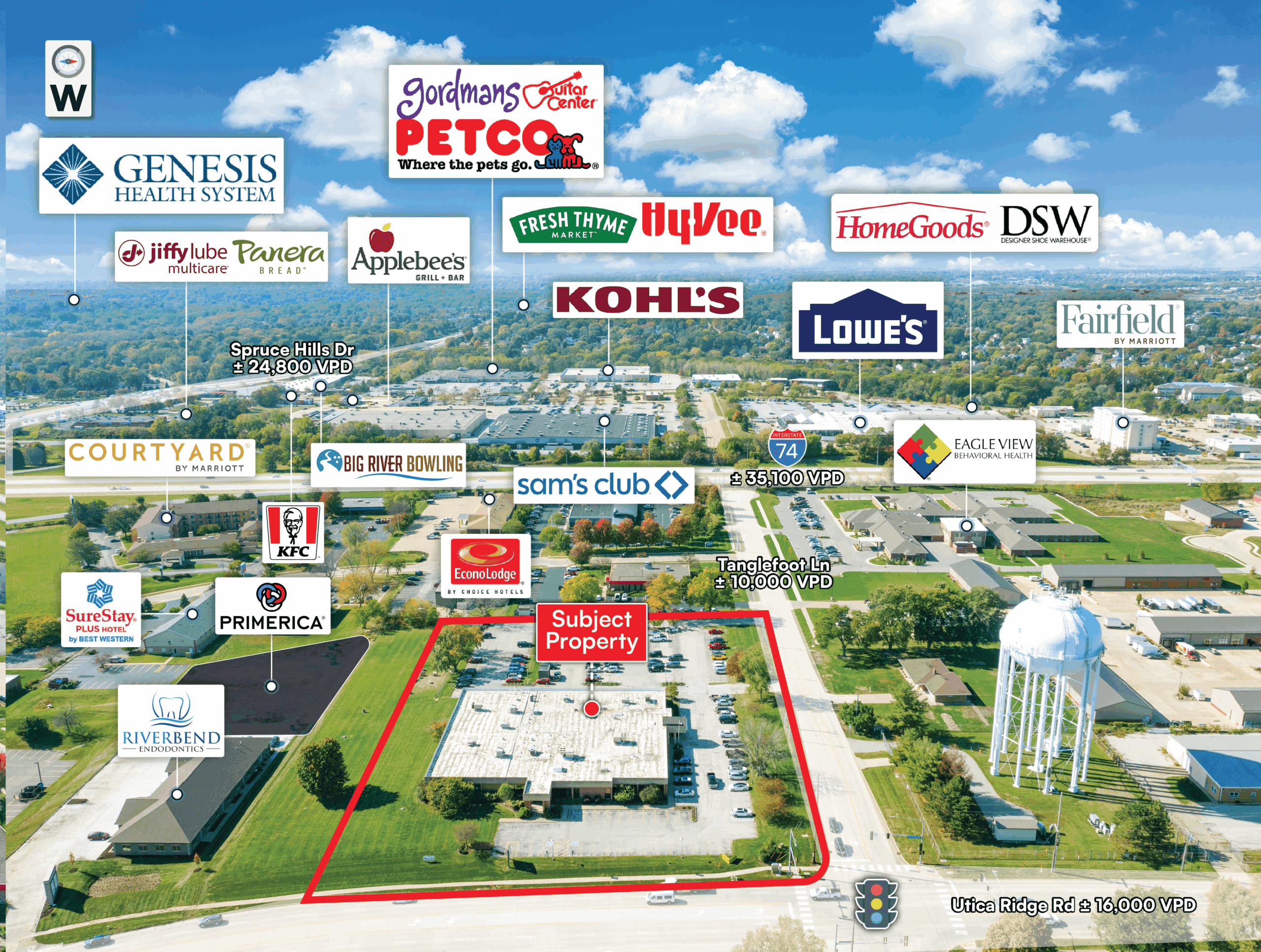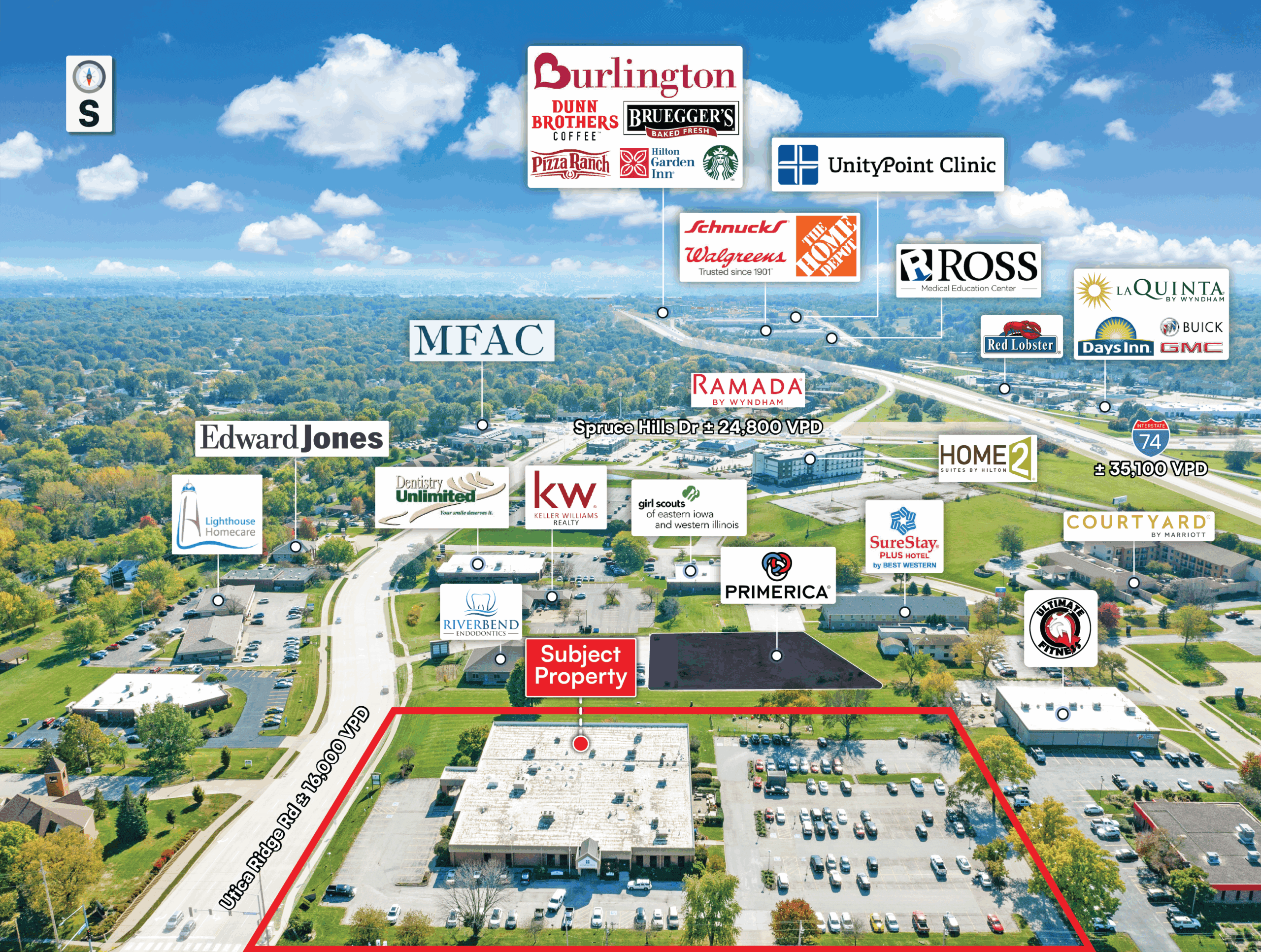 High-Visibility Corridor: Located just off I-74 with ±35,000 VPD, the site provides convenient access and proximity to major employment centers.