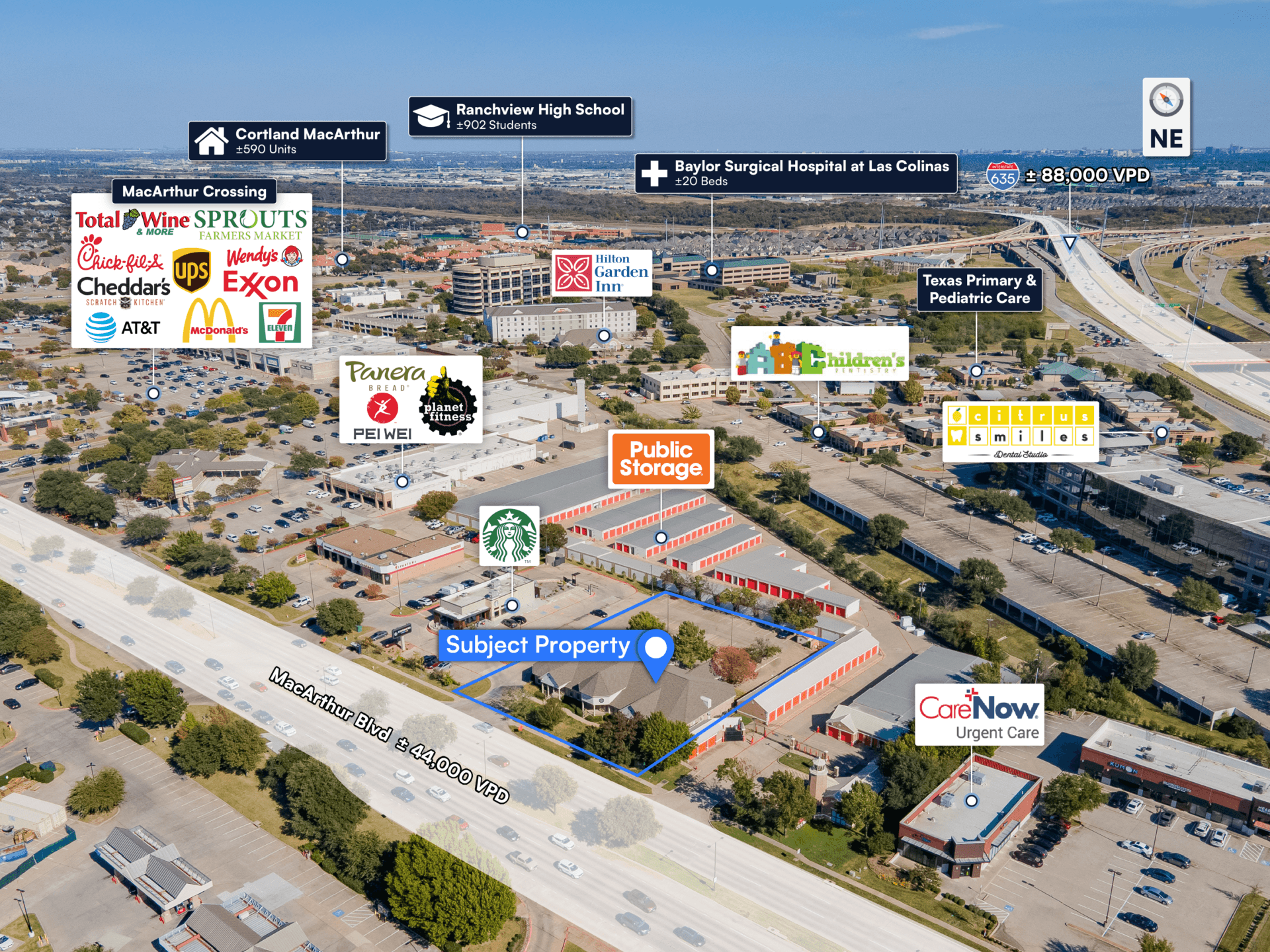 Highly Visible, Retail-Oriented Location: Positioned along North MacArthur Boulevard, the clinic benefits from strong daily traffic, excellent visibility, and proximity to major shopping centers and national retailers, enhancing convenience, repeat visitation, and long-term site relevance within the DFW Metroplex.