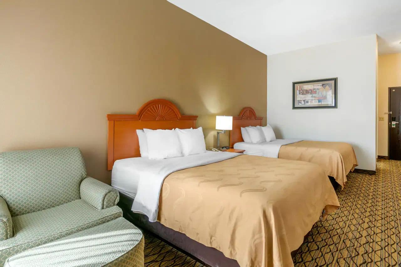 70-room, interior-corridor construction – The property offers approximately 70 guestrooms with a mix of standard kings, doubles, and suites, all equipped with flat-screen TVs, mini-fridges, microwaves, and in-room coffee makers. Interior corridors and an elevator enhance security and guest experience.