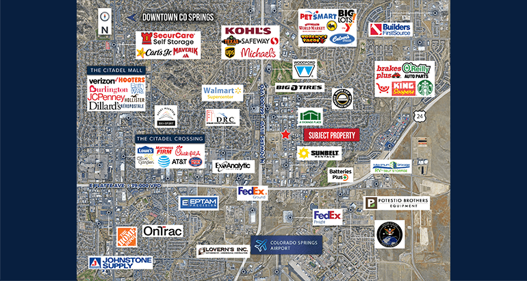 The industrial/flex warehouse is ±18,300 square feet in size and resides on a ±1.25- acre lot, positioned near major thoroughfares, including N Powers Boulevard and E Platte Avenue. The property was constructed from reinforced concrete in 1972, and benefits from I-2 CAD-O zoning, making it suitable for a wide range of industrial uses. Notable features include 4 grade-level doors, 1 dock-high door, 14-foot clear height, ample parking (2.23/1,000 SF ratio) and 600 amps / 120/208v / 3-phase power (to be verified by an electrician). The building comprises roughly 10,800 square feet of warehouse space and ±7,500 square feet of office, for a property mix of 60% industrial and 40% office. The property benefits from added security with a side fenced lot and has undergone capital improvements that include a fully renovated upstairs office and a new roof in 2013. The property is fully leased to two tenants with a weighted average lease term (WALT) of 5.5 years, providing a stable cash flowing investment. The primary tenant, Foster Electric Corp, occupies approximately 14,000 square feet (76.5% of the GLA) under a NNN lease that extends through July 31, 2031. Their current rental rate is $13,750 per month ($11.79/sf), with a 15% rent increase scheduled for August 1, 2026, followed by continued annual 3% escalations through the remainder of the term. The second tenant, Matt’s Radiator Sales & Service, leases approximately 4,300 square feet (23.5% of the GLA) under a Modified Gross lease that runs through June 30, 2027. This tenant currently pays $2,750 per month ($7.67/sf), with annual rent increases of $100 per month through the lease term. Additionally, they are responsible for gas and electric utility costs.