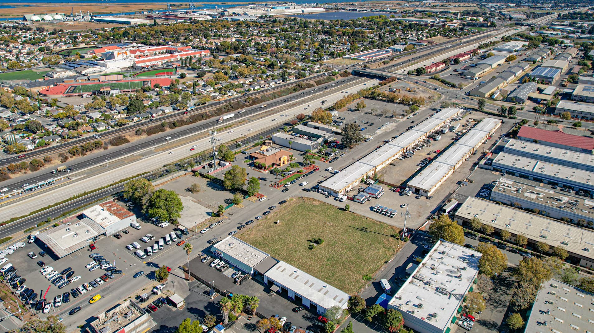 Large infill parcel with flexible layout and multiple access points.