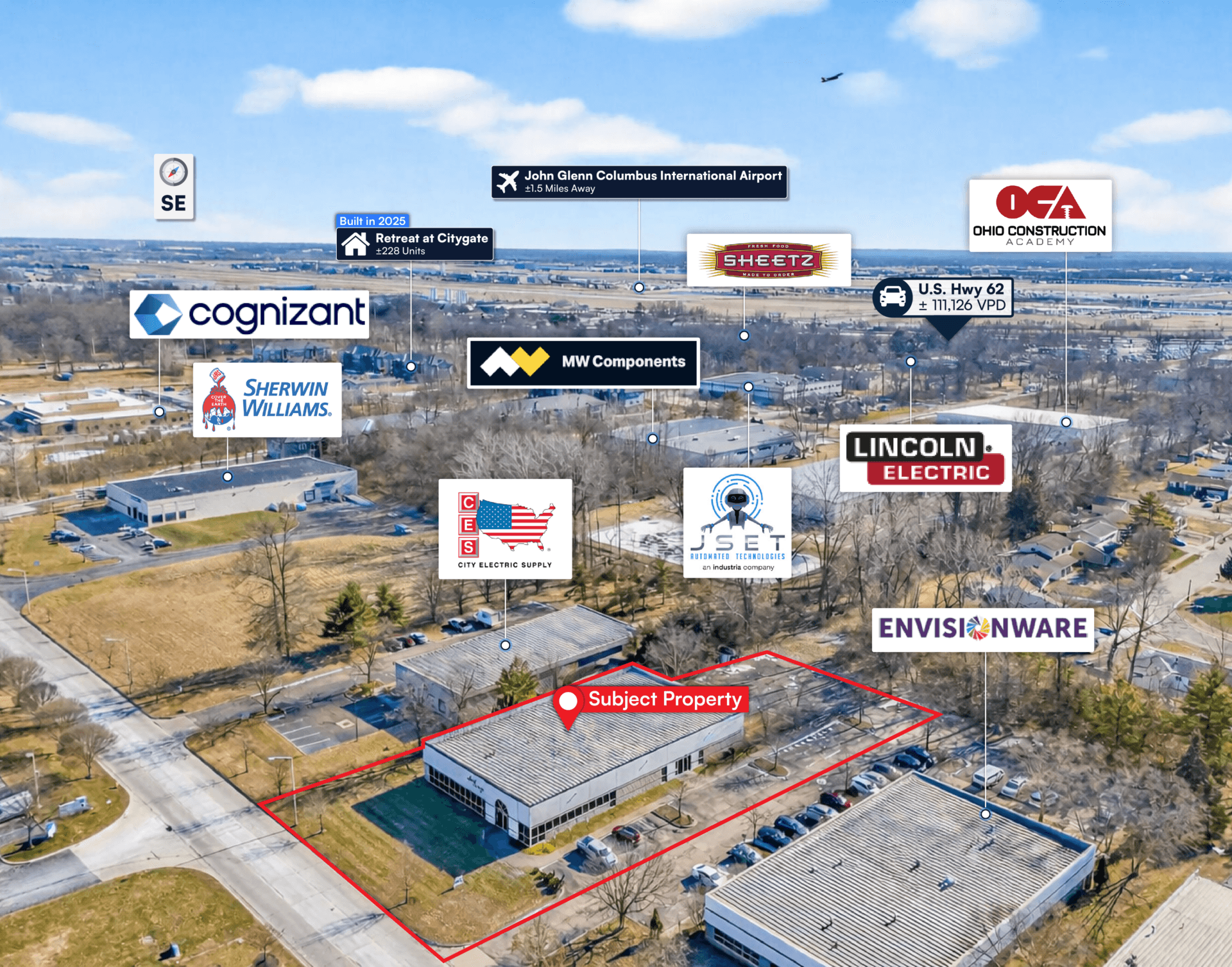 • Prime infill location with immediate access to I-670 and I-270, minutes from CMH International Airport and Easton Town Center
