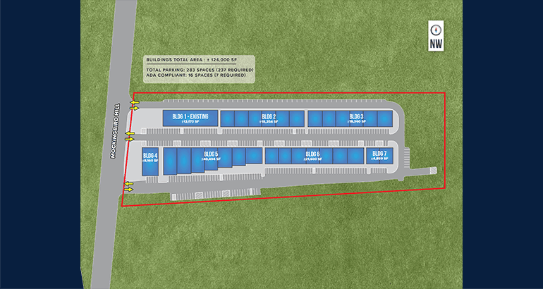 Site plans approved for ±120,000 SF office / warehouse business park development. Ownership group able to secure permanent Minor PUD zoning change for office / warehouse uses for the ±10.25 AC tract previously zoned LC-2-A (Local Commercial).