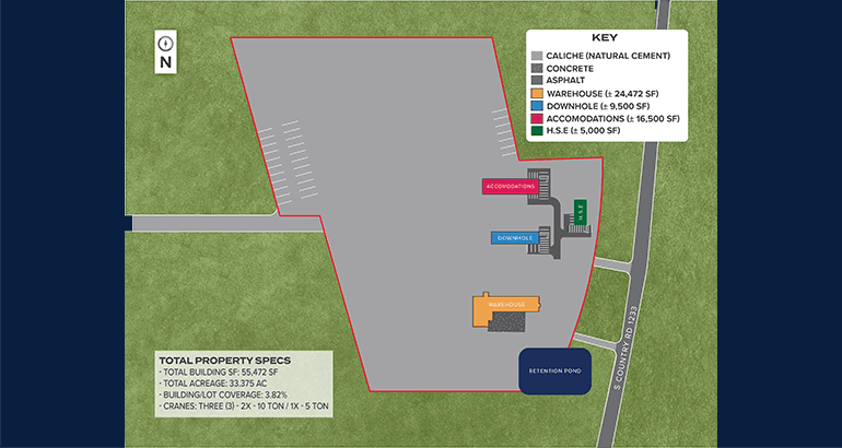 New Construction / Functional IOS – This newly developed site comprises of ±55,472 SF across four (4) warehouses on a huge ±33.375 AC lot (4% Building/Lot Coverage) allowing for abundant yard space for open storage and operating heavy infrastructure & fleet-based logistics – a critical advantage for infrastructure service providers operating in the Permian Basin. With three (3) cranes and Twenty-Eight (28) grade level doors, this is a mission-critical facility designed to support high-throughput industrial operations, equipment staging, and 24/7 field service mobilization.
