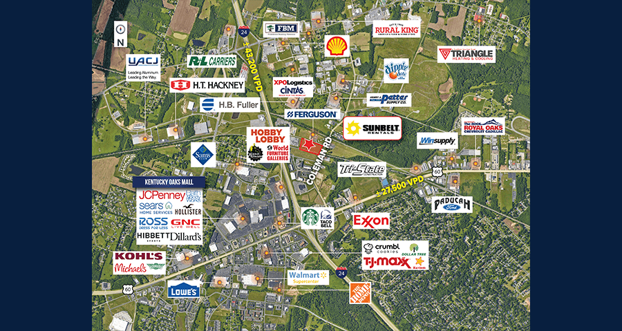 Strategic Industrial Location / Epicenter of U.S. Transportation Corridor – The subject Sunbelt Rentals property is strategically located at the epicenter of the country’s transportation corridor. Paducah, KY has direct access to the Canadian National Railway & is home to the Paducah-McCracken County Riverport, a major inland/approved Foreign-Trade Zone port. Western Kentucky is considered the hub of the U.S. Inland Waterways due to being positioned right at the confluences of four (4) major Eastern River Systems. This, along with many other factors, make this an ideal location for industrial operations both now & in the future.