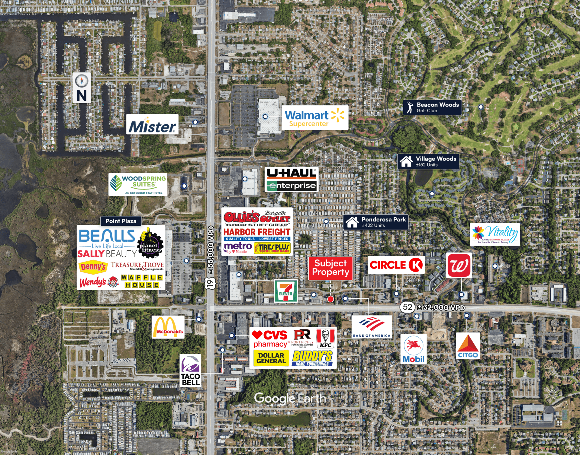 Strategic Retail Location: ±0.59-acre C-2 zoned parcel with direct frontage along State Road 52, a key arterial thoroughfare with an average daily traffic count of approximately ±32,000 vehicles, offering strong visibility and access within a vibrant commercial corridor.
