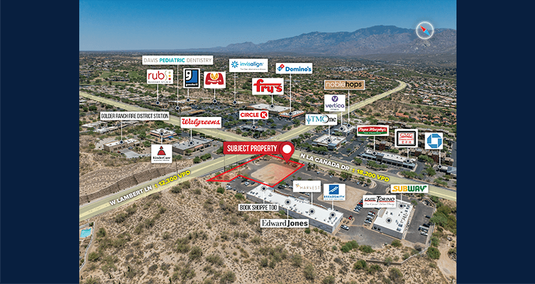 Hard Signalized Corner– Property is strategically located on the corner of Lambert Ln and La Canada Dr within the Canada Crossroads Shopping Center.