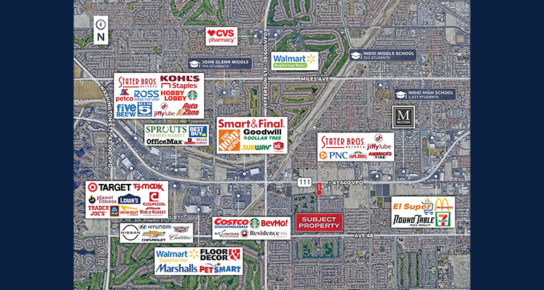Major Arterial Frontage – Situated along Highway 111, the primary arterial corridor spanning approximately ±20 miles through the Coachella Valley, with traffic counts exceeding ±41,600 vehicles per day.