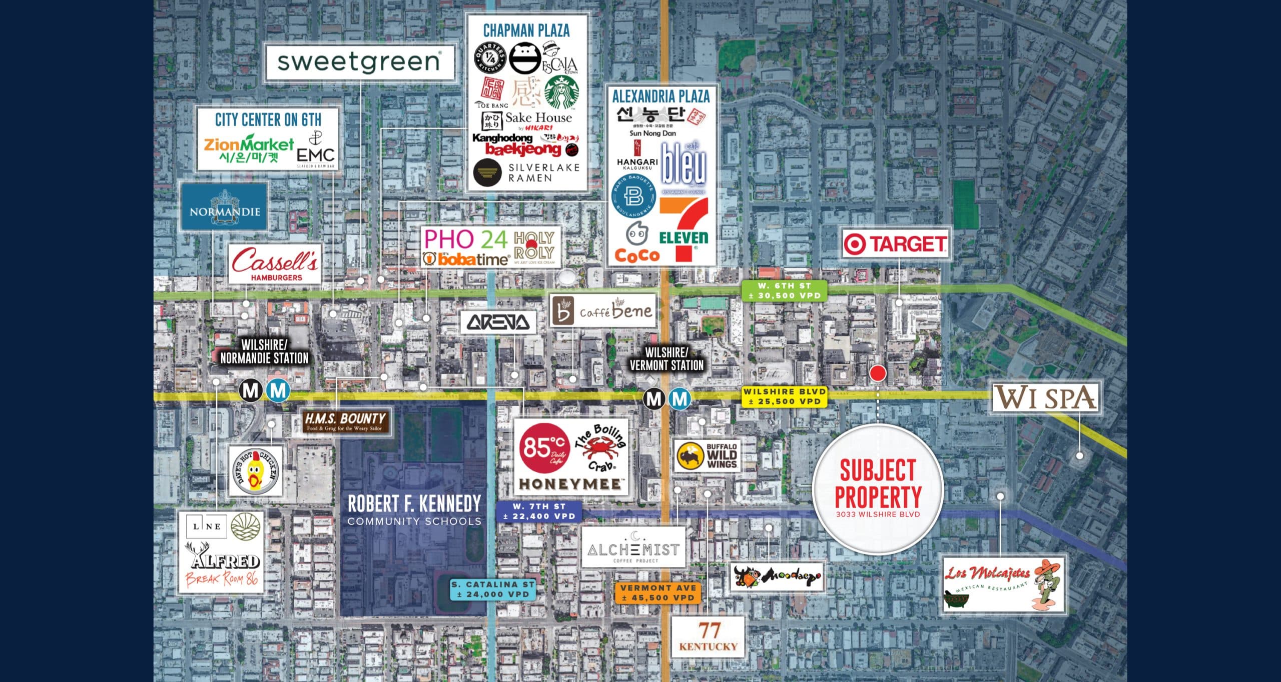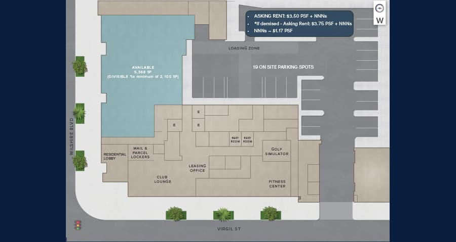 • 5,368 SF (divisible) available along Wilshire Blvd (25,500 VPD) in the heart of Koreatown