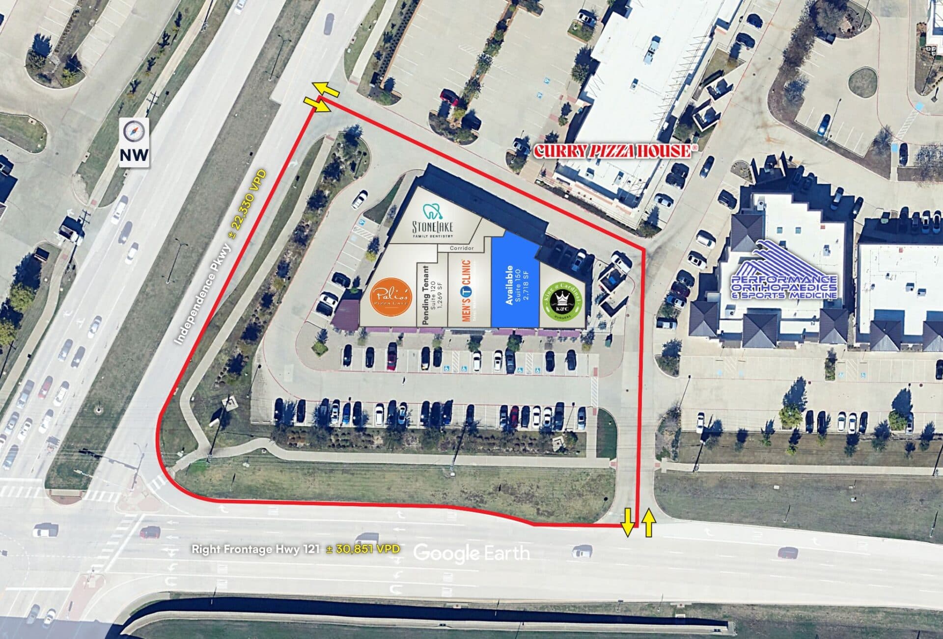 High Visibility & Access: Located just off the Sam Rayburn Tollway (±104,391 VPD) with visibility from SH-121 and Independence Pkwy (±42,700 VPD combined). Multiple ingress/egress points provide convenient access and strong exposure.