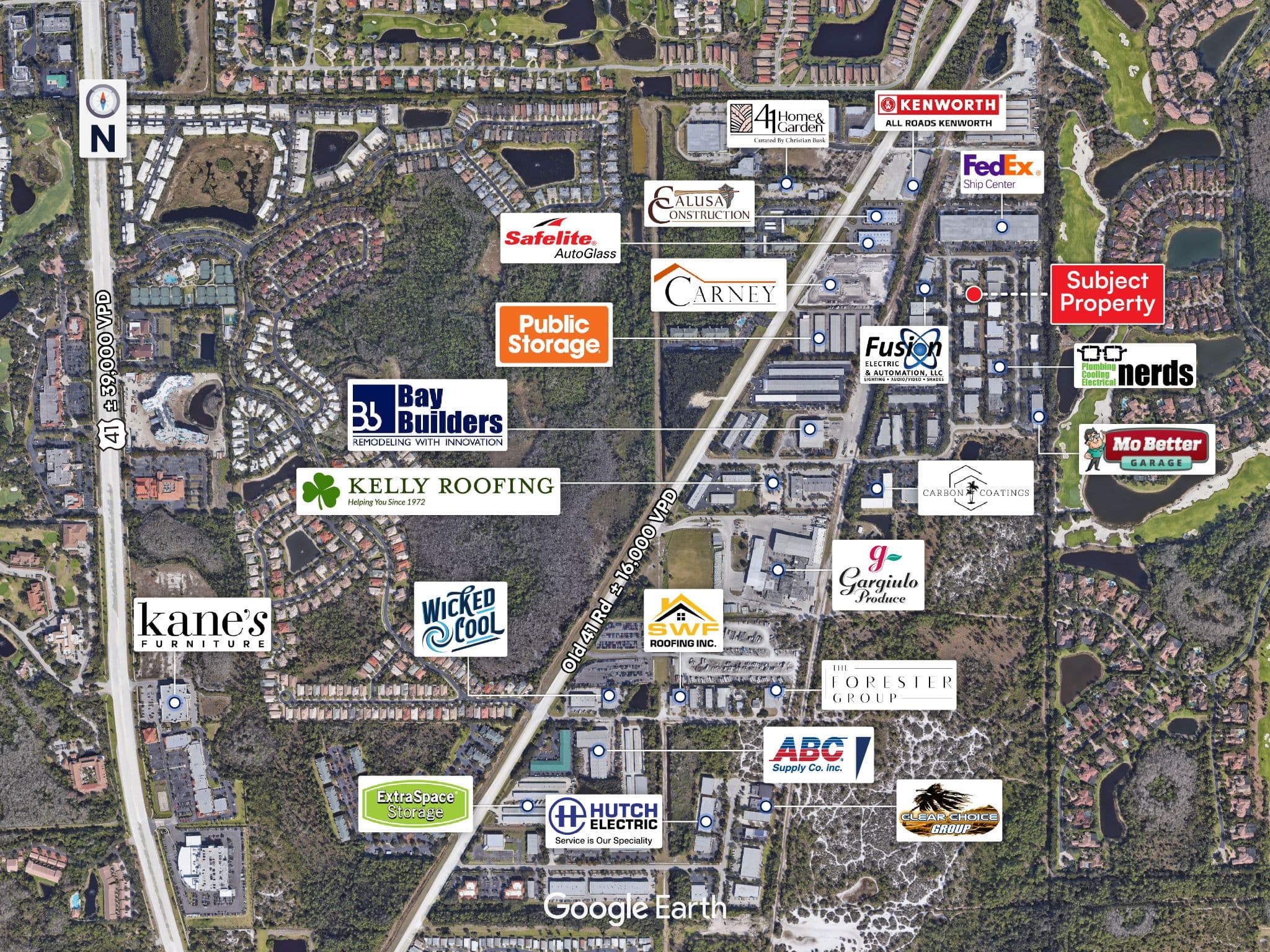 Prime Location with Excellent Visibility: Located on Rail Head Blvd just east of Old 41 in Naples, the property offers easy access to major arterials, connecting tenants to key business parks, industrial areas, and regional transportation hubs. This central location is ideal for users servicing both Collier and Lee Counties.