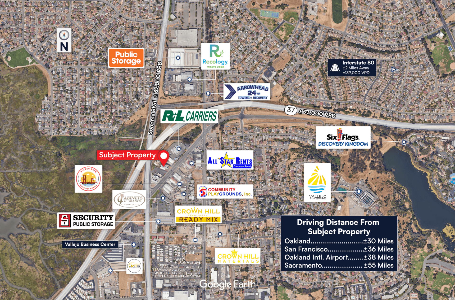 ±73,000 VPD along Highway 37 and ±37,800 VPD along Sonoma Boulevard