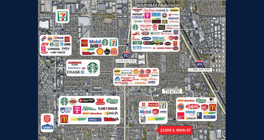 • Multiple points of ingress and egress on massive ±34,235 SF lot
