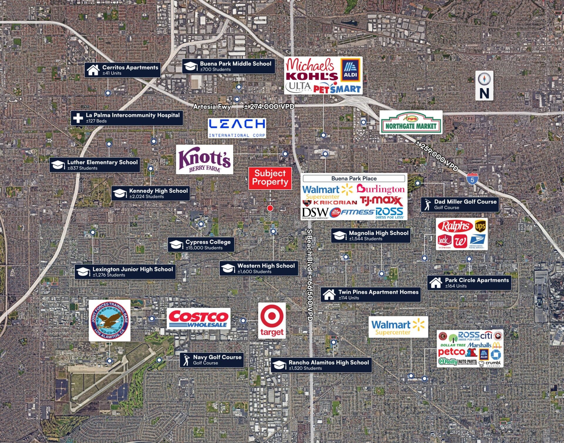 • 1 Mile from Cypress College – Serves over 15,000 enrolled students.