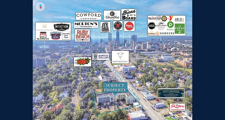 In addition to its rich history and bustling retail environment, Third and Main residents are within convenient proximity to endless demand drivers. Located just minutes from Downtown Jacksonville and within a 10-minute commute of Riverside, San Marco, Avondale, and Murray Hill, Third and Main provides unparalleled accessibility to the city’s premier business, entertainment, culinary, and cultural hubs. Sports, jobs, entertainment, live events, restaurants/bars, museums, public parks, river walks, shopping, and more are all just around the corner.