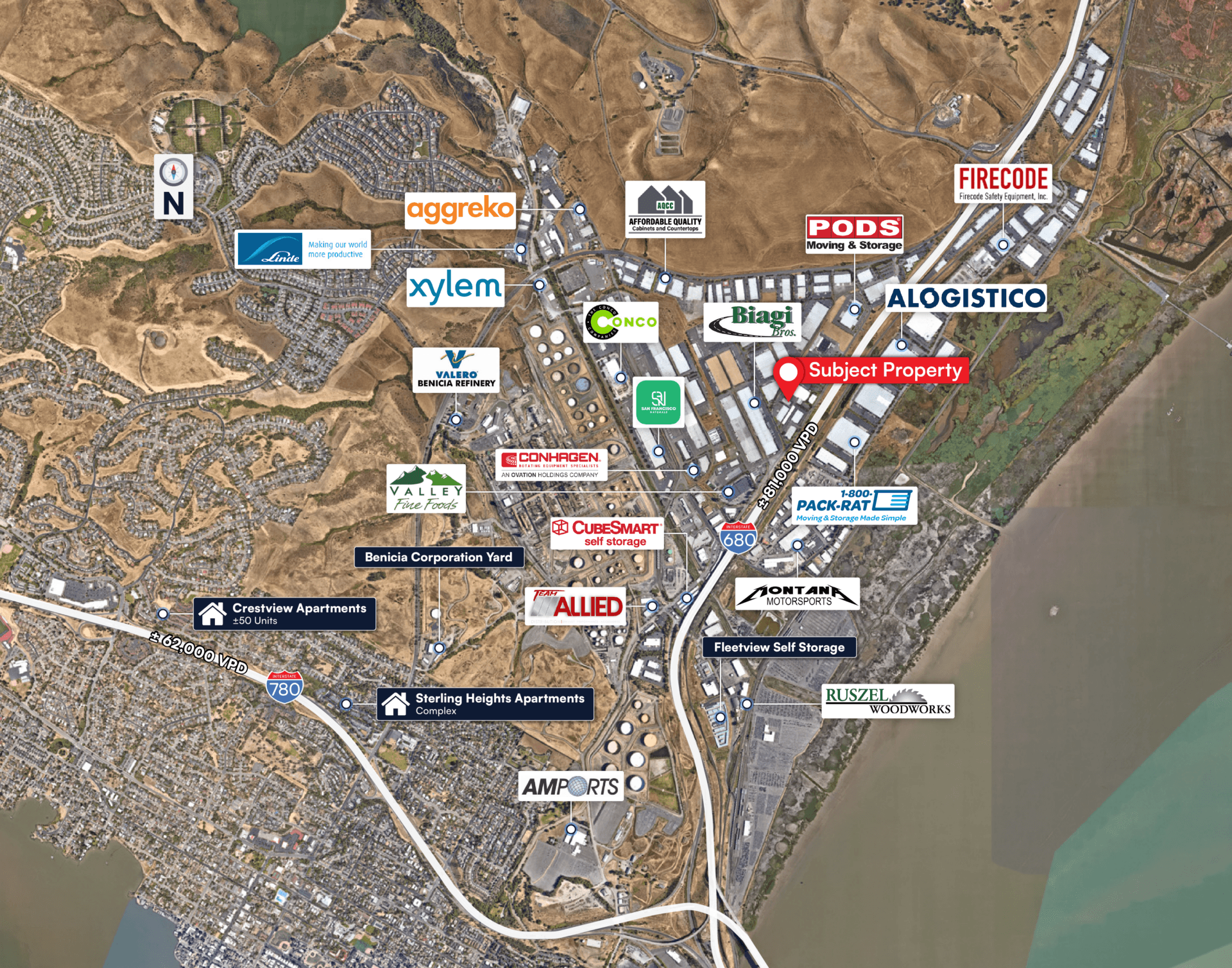 - Strategic Location – Situated within the Benicia Industrial Park — Solano County’s largest industrial hub — with immediate access to I-680 and I-780, minutes from the Port of Benicia and Union Pacific Rail.