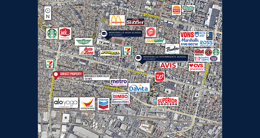• The highly accessible strip center properly is located on a signalized hard corner at the intersection of E Olympic and Garfield