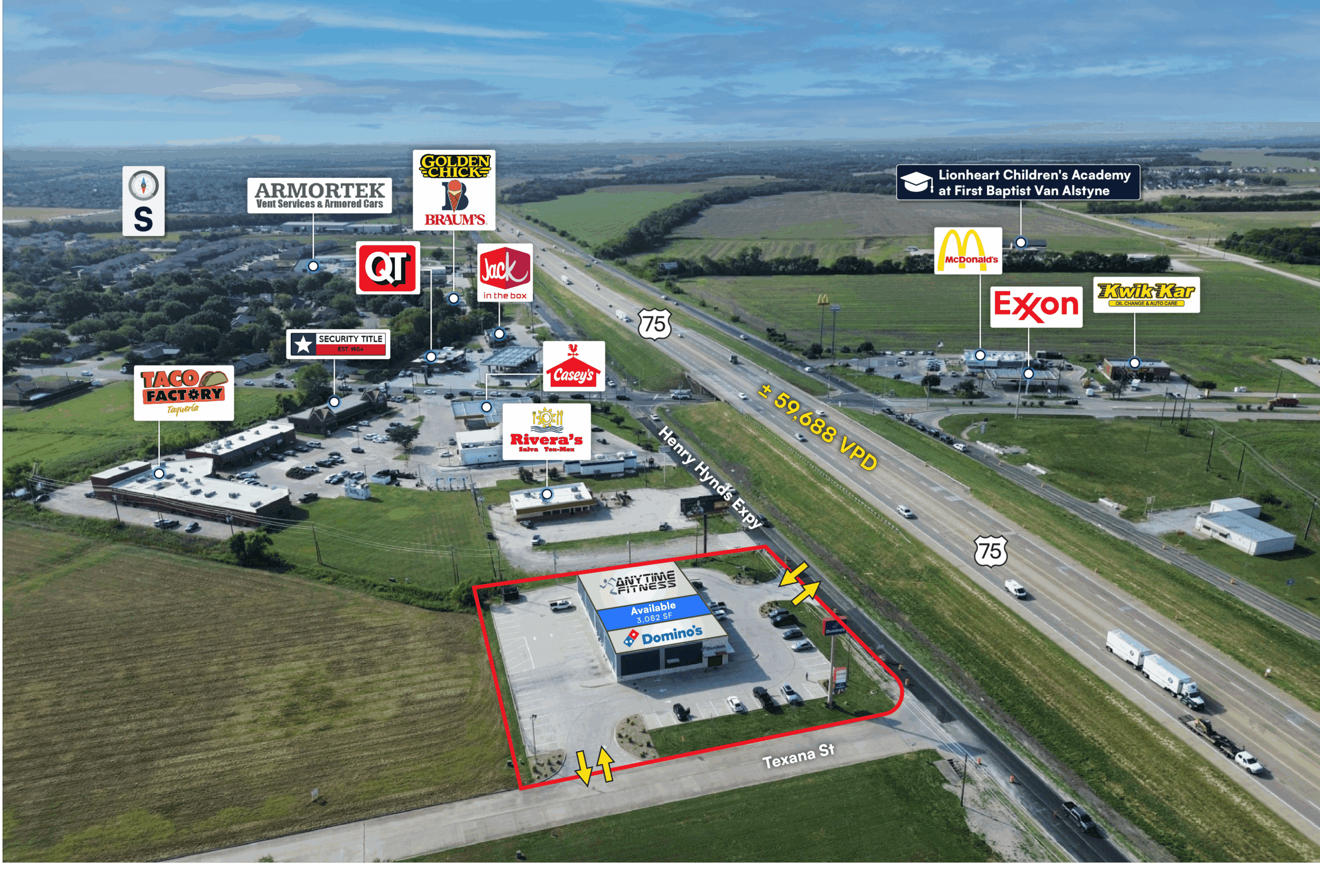 • Direct frontage on US-75 with pylon signage visibility