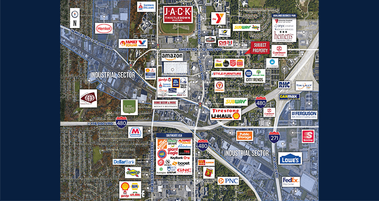 7,250 SF former Family Dollar is located on Emery Road in Warrensville Heights, offering excellent visibility and high traffic with 28,800 VPD at Emery and Green Road.