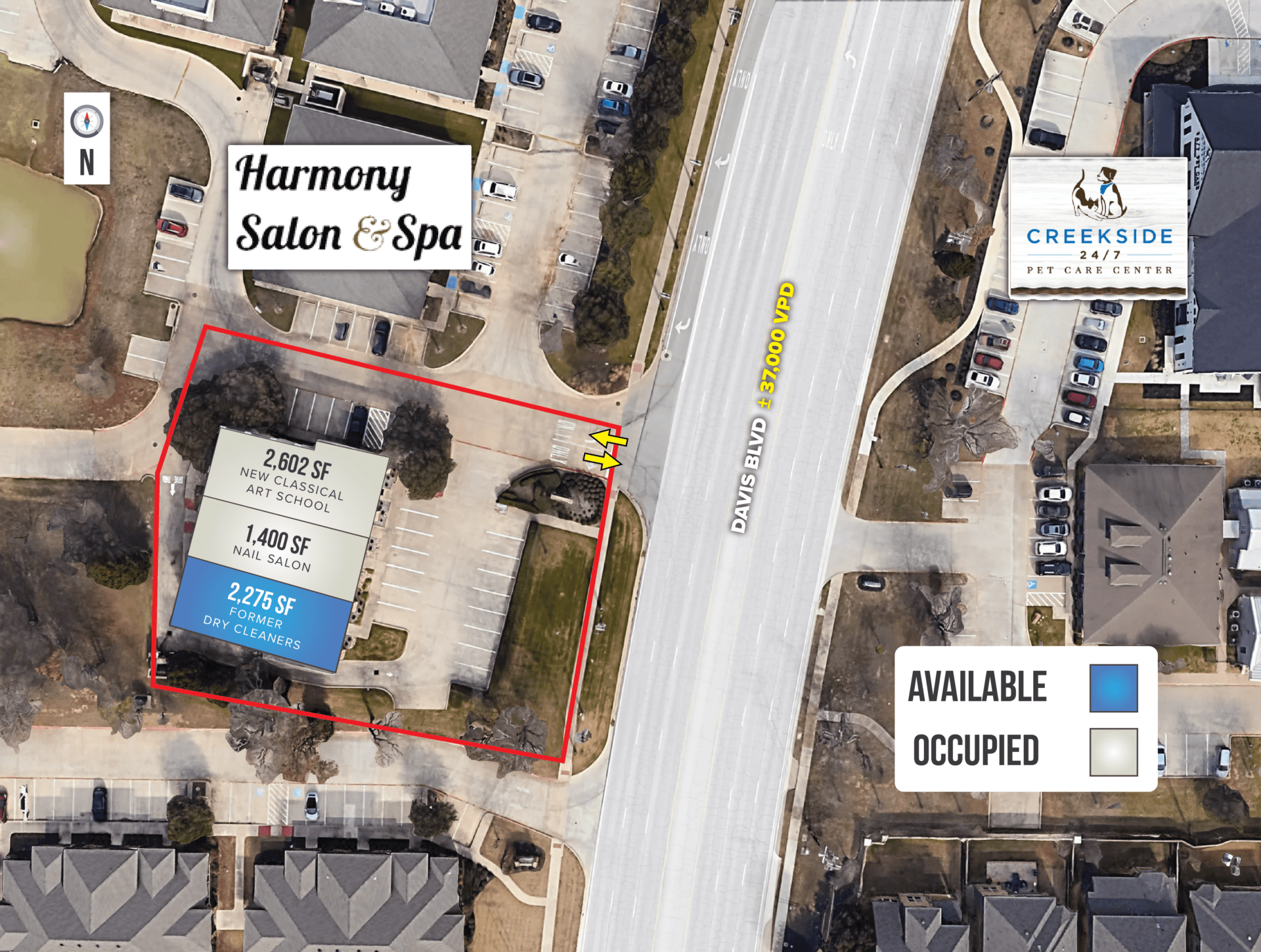 • Excellent location with traffic counts exceeding ±37,000 VPD on Davis Blvd