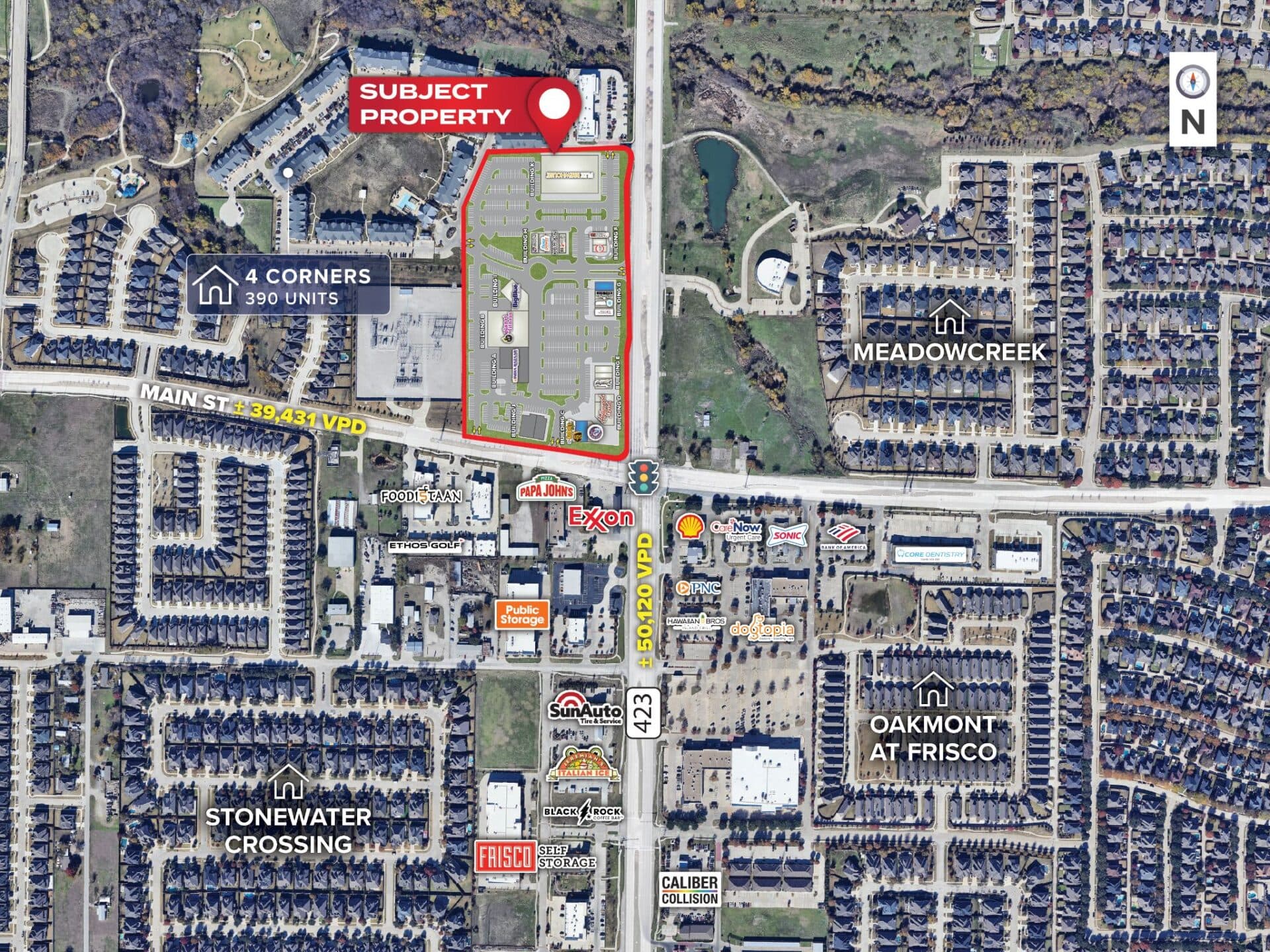 Northwest Quadrant of FM 423 & Main Street with multiple access points along both FM 423 & Main St