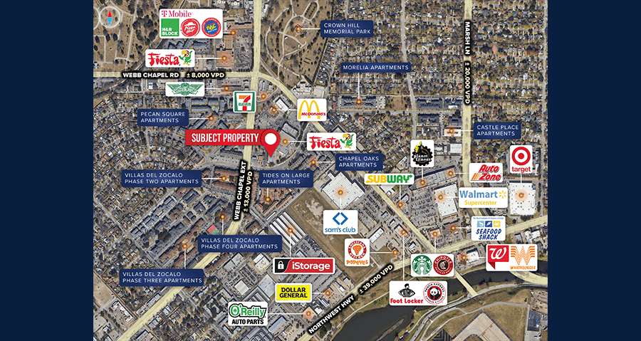 • Surrounded by an abundance of national tenants: McDonald’s, 7-Eleven, Metro by T-Mobile, Fiesta Mart, etc.