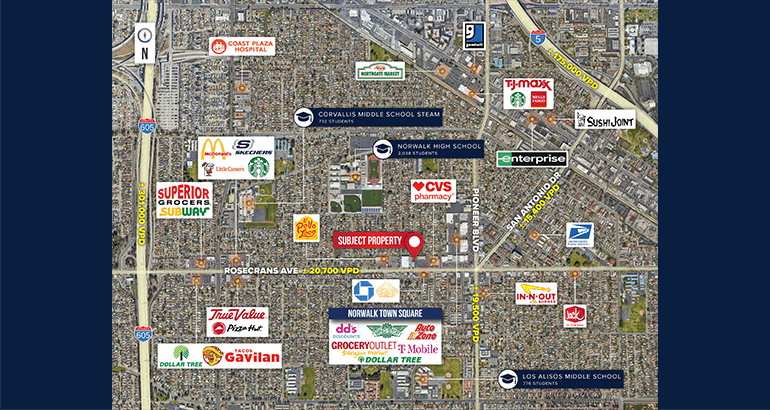 • ±13,937 SF Shopping Center located on Rosecrans Ave in Norwalk, CA