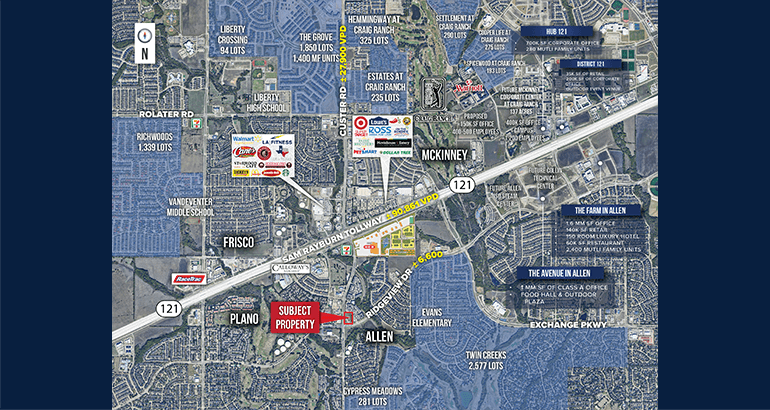 • Mixed use project recently announced on the southeast corner of SH-121 & Custer Road which will include approx. 430 apartments, 102 townhomes, & a popular North Texas Grocer