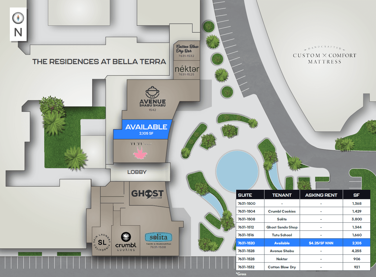 • Restaurant space available at Bella Terra, one of Orange County’s premier lifestyle centers