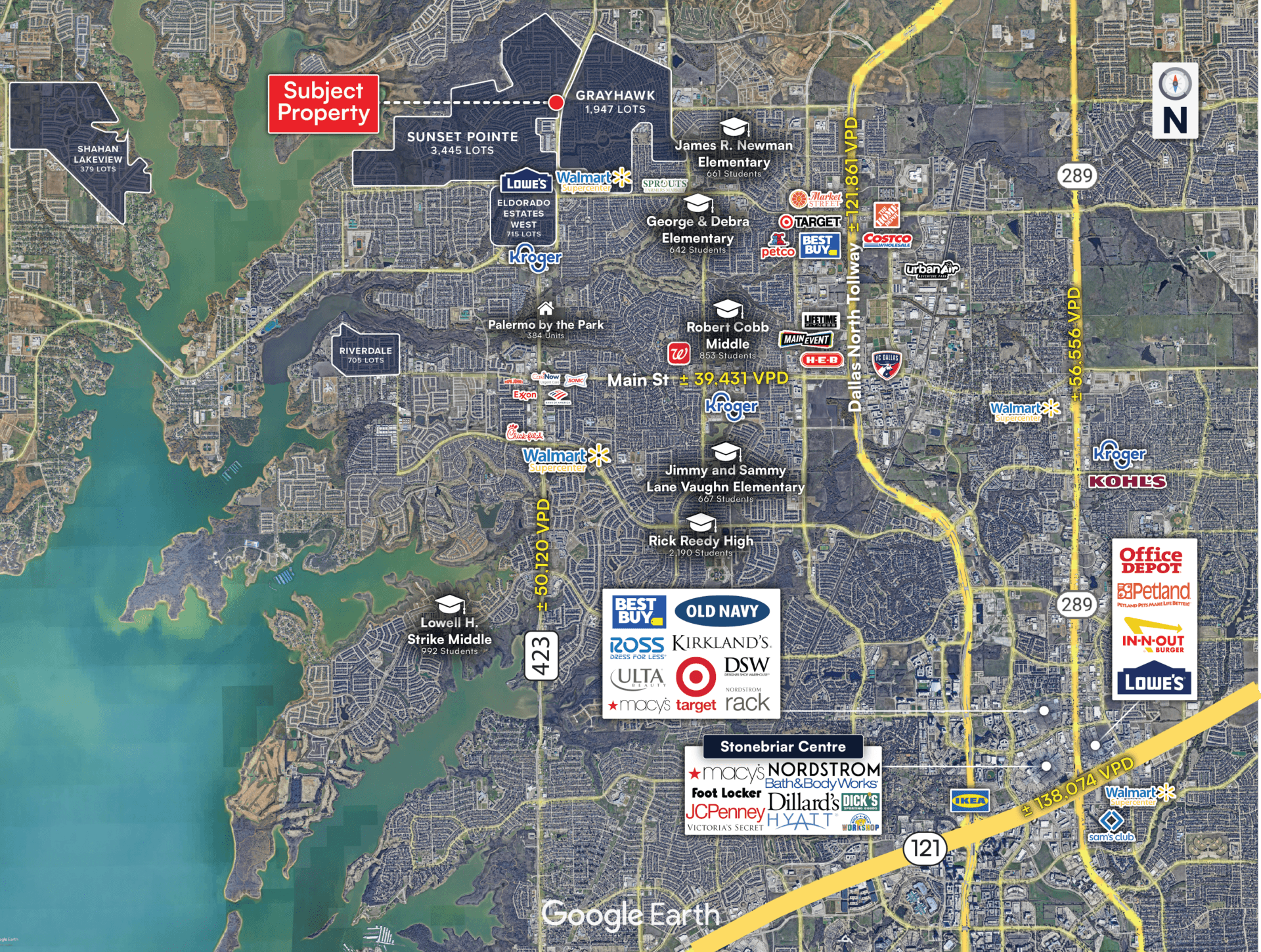 • Surrounded By Major Retailers: Retailers include HEB, Lowe’s, Walmart, Sprouts, Kroger, Chic-Fil-A, Costco, Velvet Taco, Omni PGA Frisco Resort.
