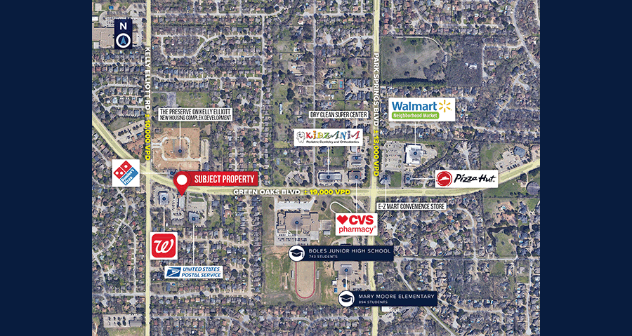 The shopping center is conveniently located near dense residential neighborhoods on the corner of SW Green Oaks Blvd & Kelly Elliott Rd making it easily accessible for local residents