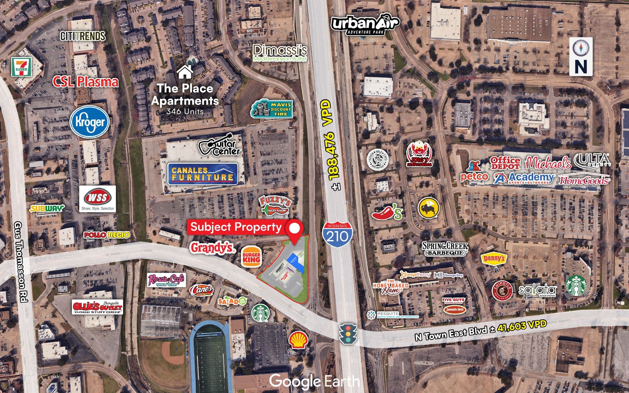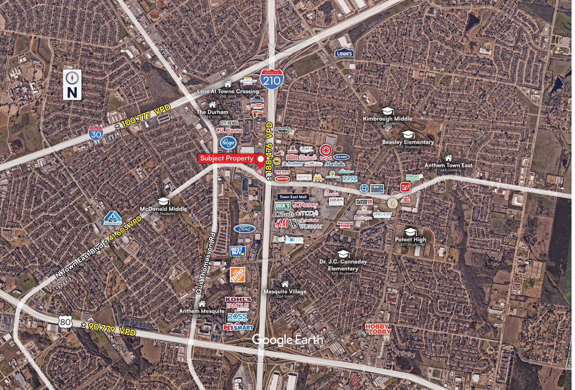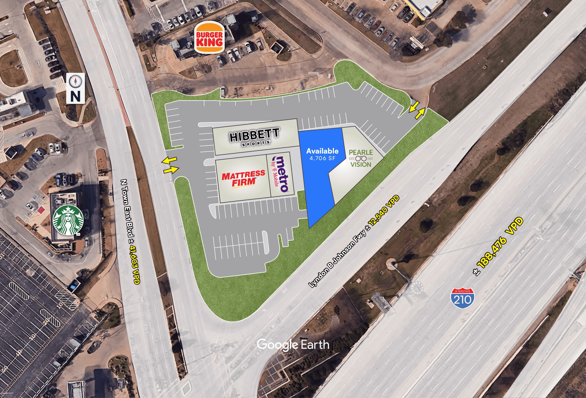 Prime Corner Location: Exceptional corner frontage on Highway 635 and Town East Boulevard, delivering high visibility, strong traffic counts, and easy accessibility for patients, clients, and customers.