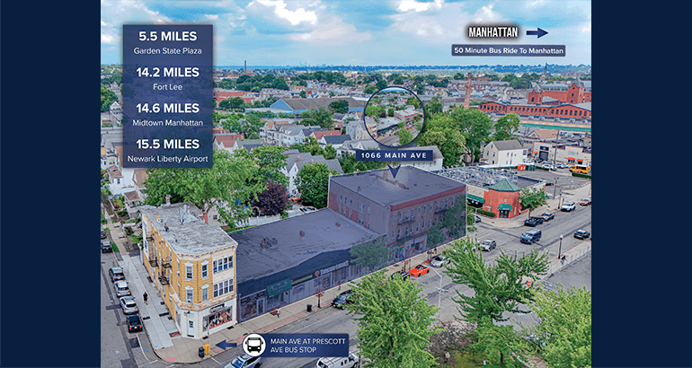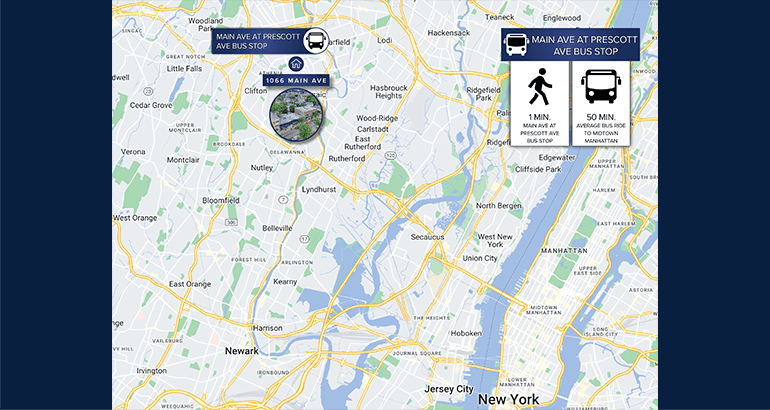• The building is directly in front of Main Ave at Prescott Ave Bus Stop which provides a 50-minute trip into Midtown Manhattan