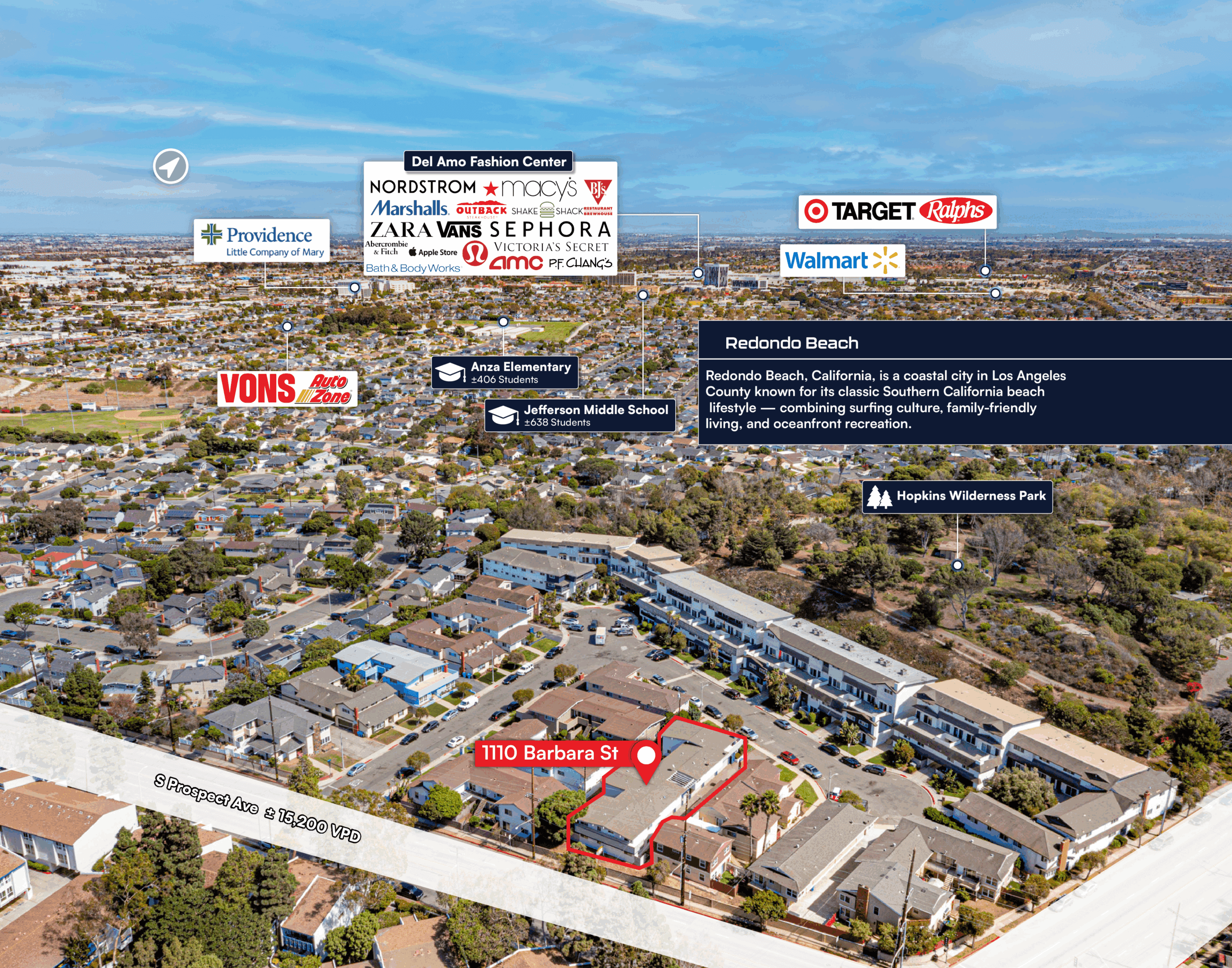 This offering presents an excellent opportunity for an investor to capitalize on strong rental demand and premium market rents in one of the South Bay’s most coveted coastal communities with no local rent control and 17% rental upside potential on current rents. Residents enjoy the best of coastal living in a highly sought-after South Bay neighborhood, just minutes from world-class beaches, parks, restaurants.