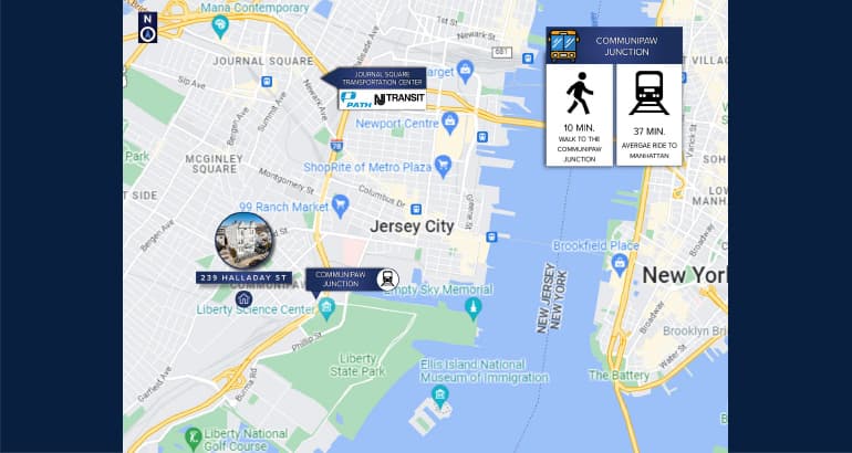 • The building is approximately a 10-minute walk to the Communipaw Junction stop which provides a 37-minute trip into Midtown Manhattan via bus