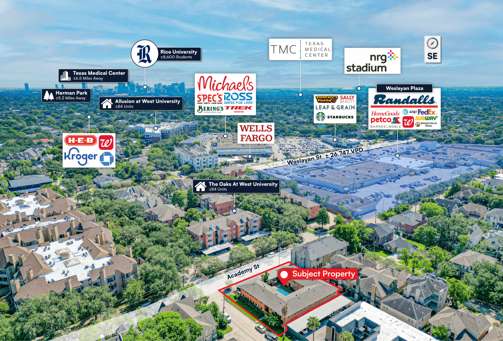 - Weslayan Plaza, located just minutes from the property, adds daily-use retail convenience with anchor tenants such as Randalls, CVS, and Starbucks.