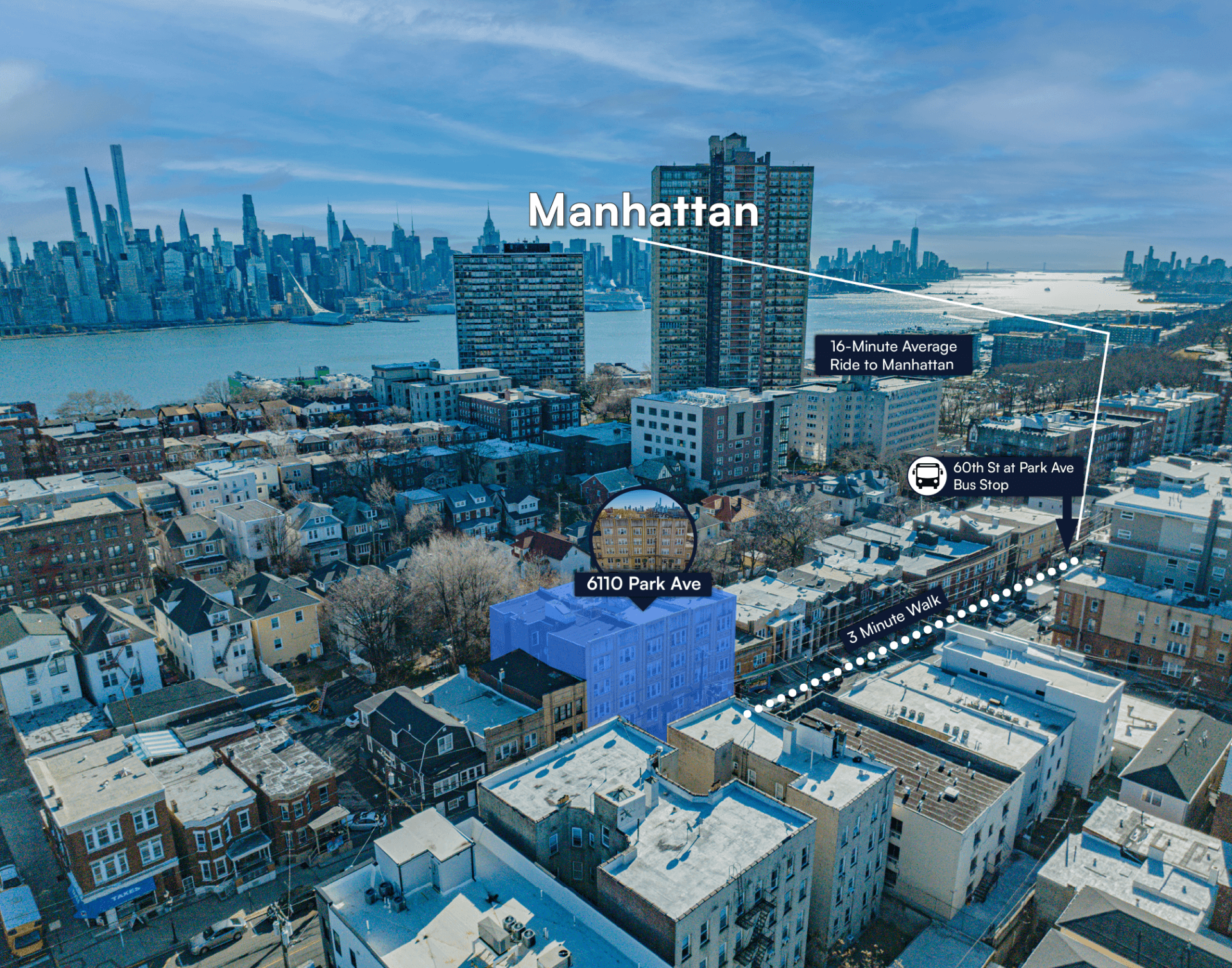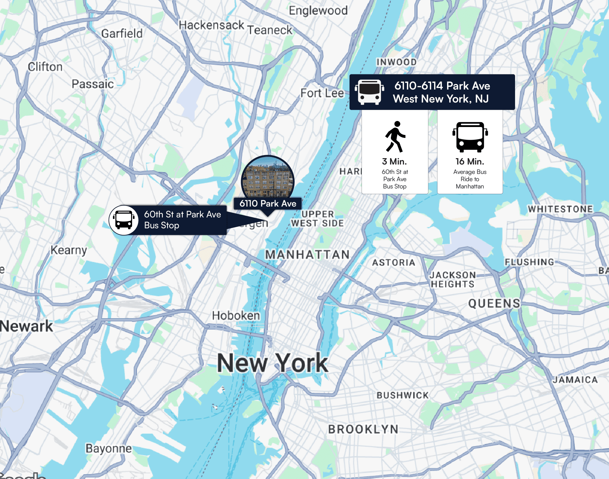 • The building is approximately a 3-minute walk to 60th St at Park Ave bus stop which provides a total 16 minute trip to Manhattan via the PATH Train.