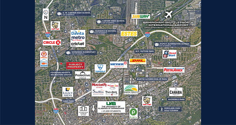 Beyond its location advantages, the property sits near several of the city’s major cultural and recreational attractions, such as the McWane Science Center, Vulcan Park, and the Birmingham Zoo & Botanical Gardens. The University of Alabama at Birmingham and UAB Hospital System are also within a short distance, supporting demand from students and faculty.