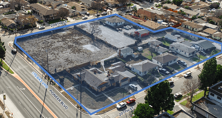 STRATEGIC LOCATION – Positioned on a corner lot along Pioneer Boulevard, spanning half of two residential blocks (207th & 208th Streets) and nestled between major streets of Del Amo Boulevard and Centralia Street.