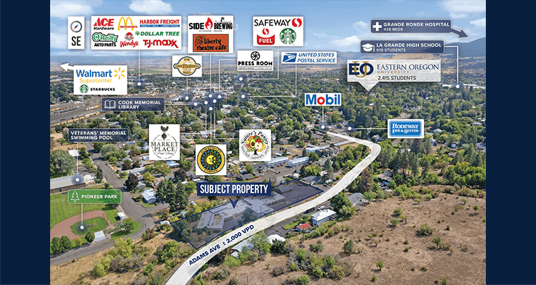 Zoning: The property is zoned LG-R3; High Density Res which allows for multifamily redevelopment of a (11) eleven or more dwelling units per acre density. With the property’s proximity to Gangloff Park, Pioneer Park, & Eastern Oregon University, consistent demand can be anticipated for a new multifamily development. Redevelopment dwelling options include: Single-Family, Duplex Dwellings, Triplexes, Quadplexes, Townhouses, Apartments and Condominiums providing investors a wide-range of possibilities. The property can be conditionally redeveloped into other uses including but not limited to: Community Education (public and private), Medical Services, & Lodging.