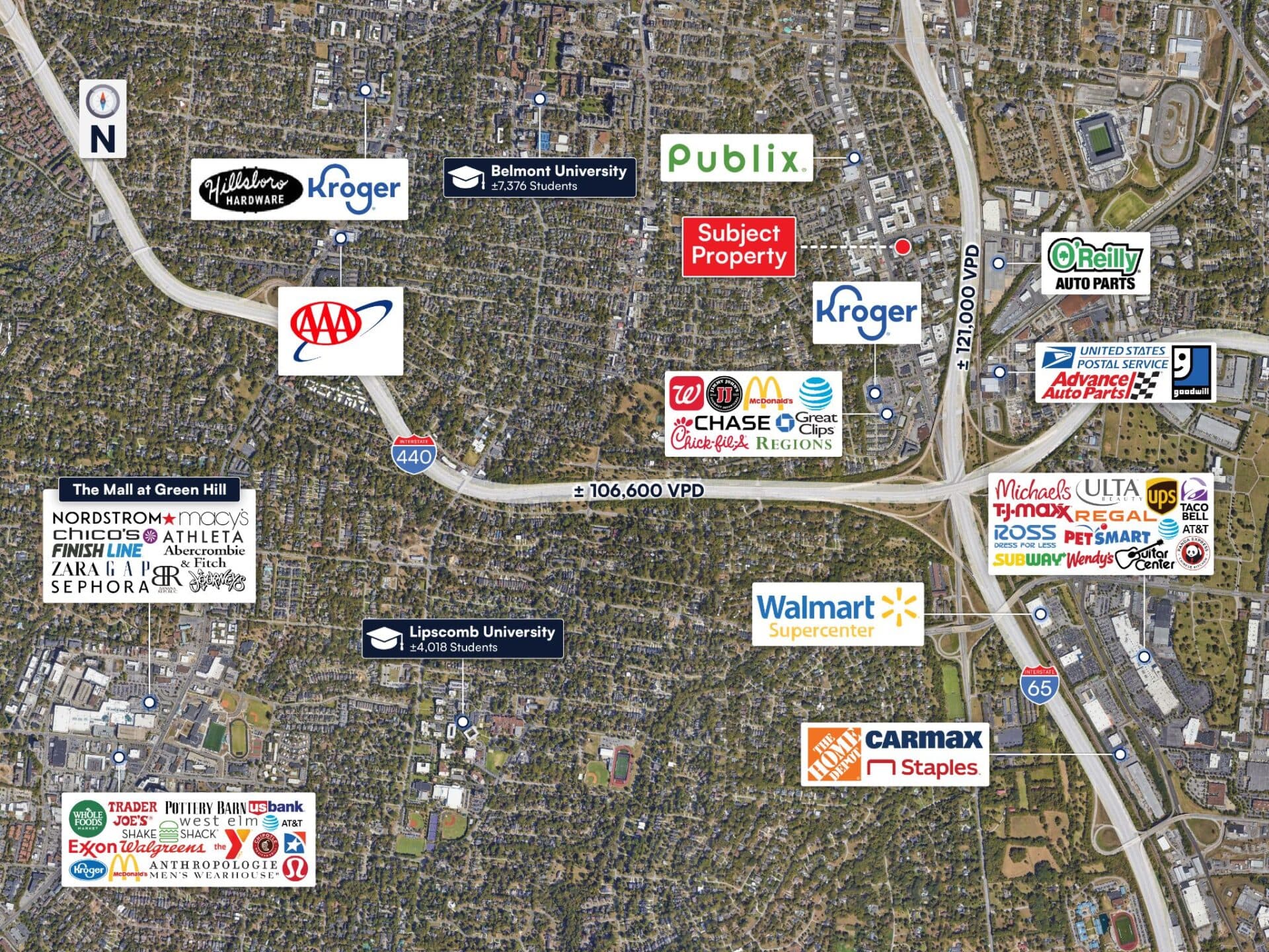 Proximity To Interstate – The property is situated less than one (1) mile from direct access to I-65 and I-440.