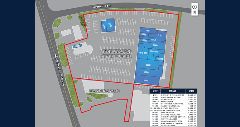 ➢ This asset is positioned to be a hub for all things driver’s licenses, vehicle registration, and other services for Southwest Ohio, with tenants such as the Ohio BMV Investigations Office, the Ohio Drivers Exam Center, the District 3 Field Office, the Deputy Registrar, US Auto Insurance, Ohio Insurance Center, Hamilton County Title, and KMR Drivers Training.