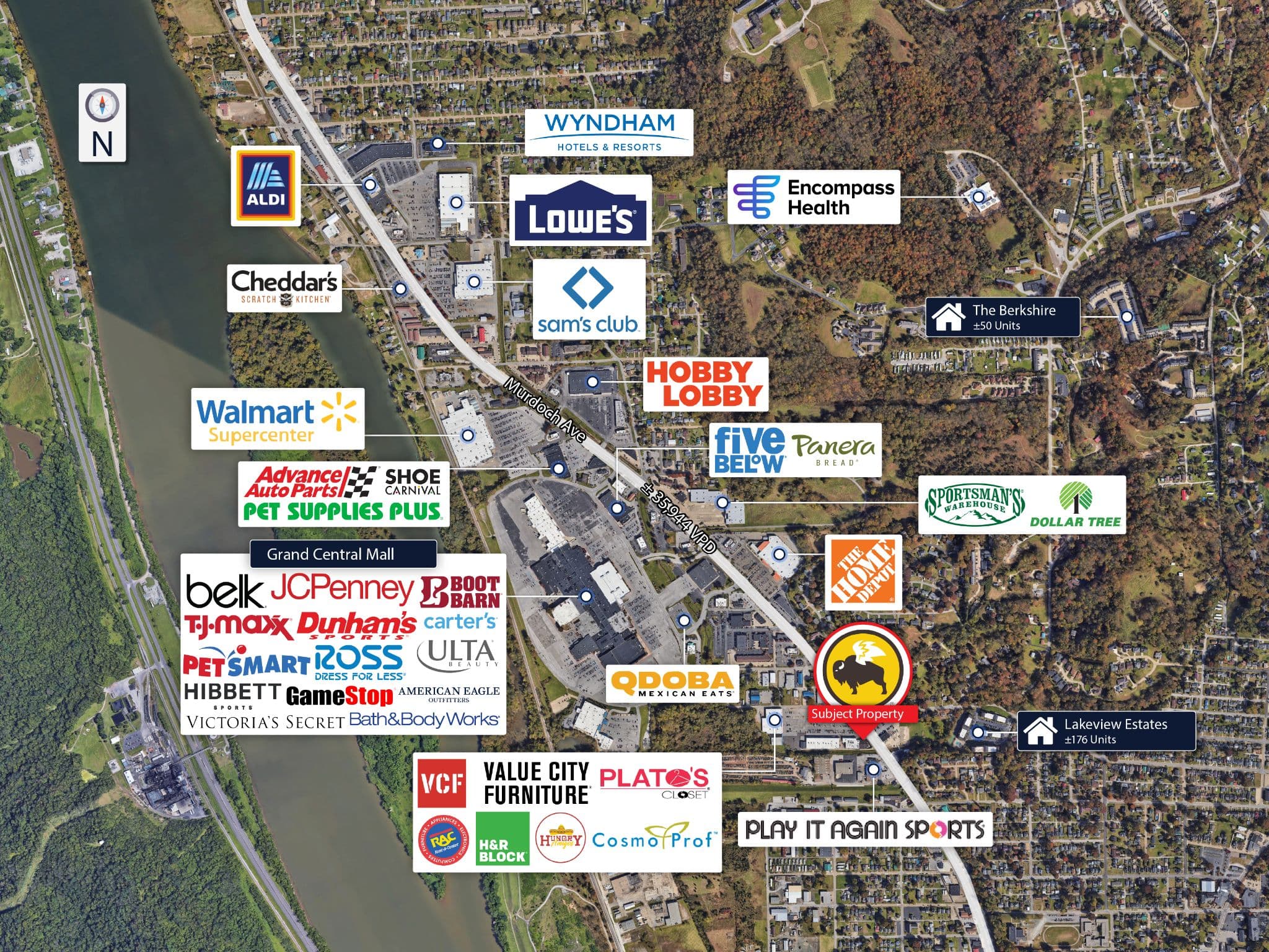 High-Visibility Location: The property is strategically positioned on Murdoch Avenue (±35,944 VPD) which is one of Parkersburg’s most active shopping destinations. Surrounded by national retailers and restaurants including Walmart Supercenter, Lowe’s, Sam’s Club, Kohl’s, Chick-fil-A, Starbucks, Olive Garden, and Texas Roadhouse, the site benefits from strong traffic patterns and steady consumer demand.