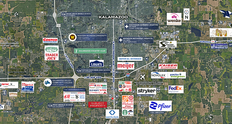 HIGH VISIBILITY & STRONG DEMOGRAPHICS: The property benefits from ±900 feet of frontage on Westnedge Avenue with approximately 31,312 vehicles per day, ensuring unmatched visibility and access. The surrounding area includes approximately 109,000 residents with an average household income approaching $101,000—providing strong spending power and tenant support. Additionally, the local daytime population increases by ±16% due to nearby employment centers, generating built-in consumer demand.